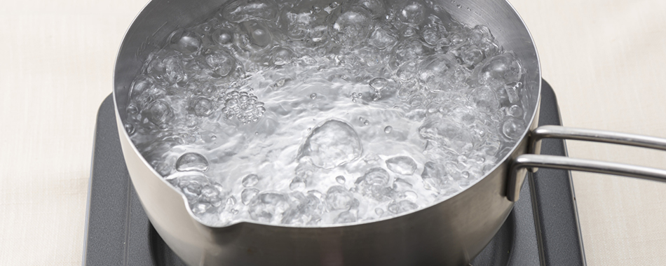 ۲- مقداری آب را در ظرفی بریزید و آن را بجوشانید. اجازه بدهید تا زمانی که آب به جوش میآید، لکهبر روی لکه باقی بماند.